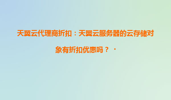 2025-04-21天翼云代理商折扣:云存储对象服务优惠详解 随着企业数字化转型加速,云存储服务成为业务发展的核心需求之一。天翼云作为国内领先的云服务提供商,不仅以技术实力和安全能力著称...