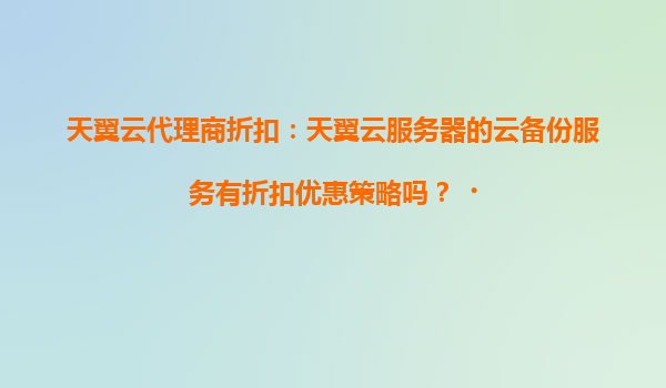 天翼云代理商折扣:云备份服务的优势与优惠策略解析 一、天翼云的核心优势 作为中国电信旗下的云计算品牌,天翼云凭借以下核心能力成为企业数字化转型的首选: ...