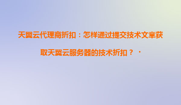 2025-04-21如何通过提交技术文章获取天翼云服务器的技术折扣? 一、天翼云的核心优势 作为中国电信旗下的云计算服务品牌,天翼云凭借以下优势成为企业及开发者的首选: 安全可靠:通过国家三级等保认证...