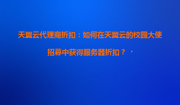 2025-04-20如何通过天翼云校园大使计划获得服务器折扣? 一、天翼云校园大使计划简介 天翼云校园大使计划是为高校学生及技术爱好者打造的实践平台,参与者可通过推广天翼云产品、组织技术活动等方...