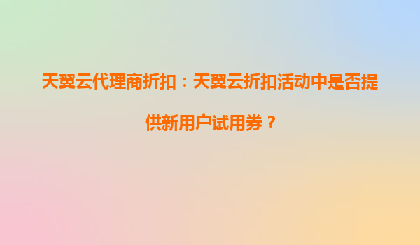2025-10-15天翼云代理商折扣:新用户试用券政策与平台优势解析 一、天翼云新用户试用券活动介绍 在天翼云的代理商折扣活动中,新用户试用券是常见的推广方式之一。天翼云...