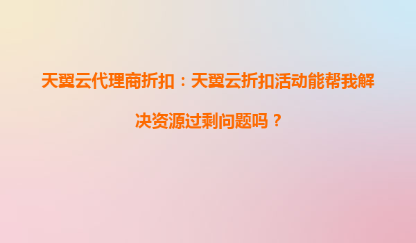 2025-10-15天翼云代理商折扣:天翼云折扣活动能帮我解决资源过剩问题吗? 在数字化转型的浪潮中,云计算已成为企业IT基础设施的核心组成部分。然而,许多企业在使用云计算服务时,常常面临资源过剩的问题——购买了大量云...