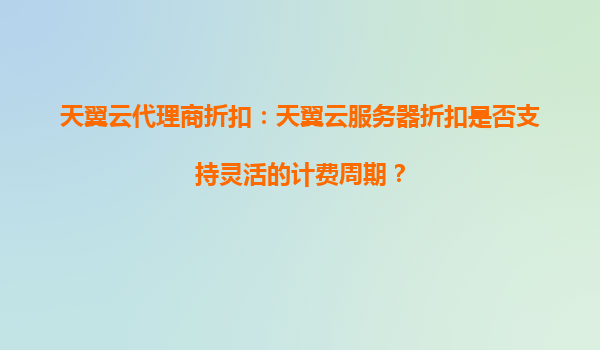 2025-04-12天翼云代理商折扣:天翼云服务器是否支持灵活的计费周期? 一、天翼云服务器的计费周期灵活性解析 天翼云作为国内领先的云服务提供商,其服务器产品在计费周期设计上充分考虑了企业的多样化需求。用户...