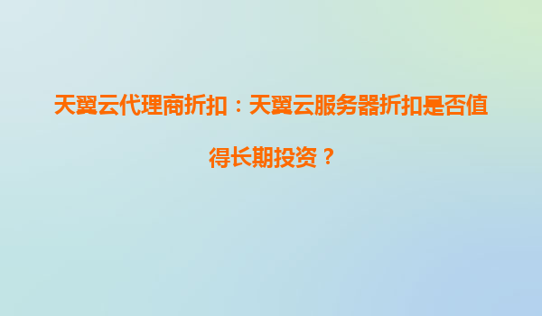 2025-04-06天翼云代理商折扣:天翼云服务器是否值得长期投资? 随着企业数字化转型的加速,云计算已成为支撑业务发展的核心基础设施。在众多云服务商中,天翼云凭借其独特的资源和技术优势脱颖而出,而通过天...