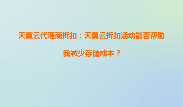 2025-10-15天翼云代理商折扣:灵活扩展云存储的明智之选 一、天翼云代理商折扣活动的核心价值 随着企业数字化进程加速,云存储的灵活扩展性成为关键需求。天翼云通过代理...