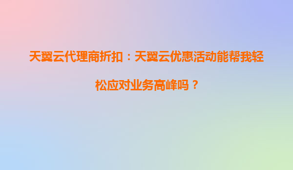 2025-10-15天翼云代理商折扣:天翼云优惠活动能帮我轻松应对业务高峰吗? 在当今数字化时代,企业业务的快速发展离不开稳定、高效、安全的云服务支持。尤其是面对业务高峰,如何确保系统的稳定性和性能,成为每个企业关注...