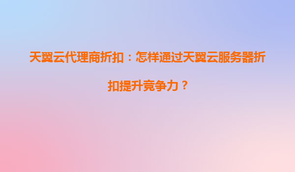 2025-04-06天翼云代理商折扣:如何通过天翼云服务器折扣提升企业竞争力? 一、引言:云计算时代的竞争新机遇 在数字化转型加速的今天,云计算已成为企业提升效率、降低成本的刚需。天翼云作为国内领先的云服务提...