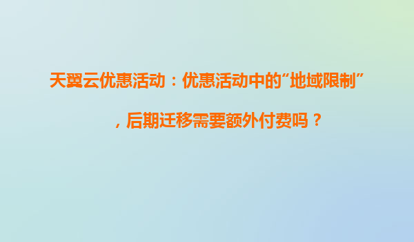 2025-04-04天翼云优惠活动中的“地域限制”解析与后期迁移成本说明 一、地域限制的含义与业务影响 在天翼云的各类优惠活动中,“地域限制”通常指用户购买的云资源(如服务器、存储等)需绑定特定区域节...