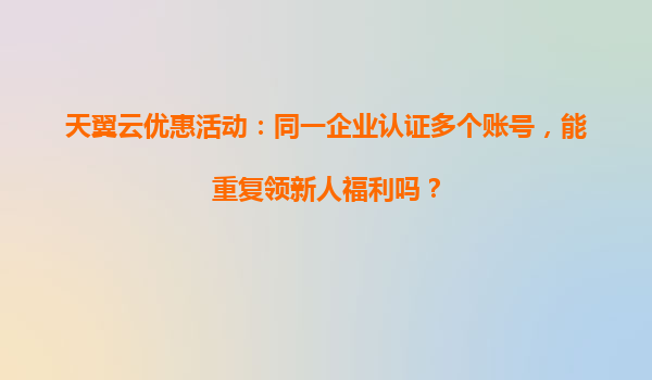 2025-04-04天翼云优惠活动解析:企业认证多账号能否重复领取新人福利? 随着数字化转型的加速,越来越多的企业选择云计算服务来提升业务效率。天翼云作为国内领先的云服务提供商,凭借其技术实力和安全能力,成为众多...