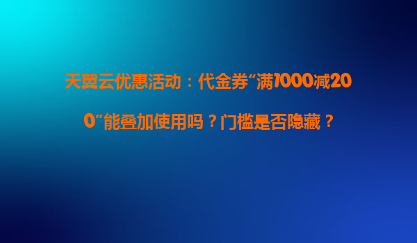2025-04-03天翼云“满1000减200”代金券活动解析:优惠能否叠加?隐藏门槛是否存在? 一、活动规则深度解读 近期天翼云推出的“满1000减200”代金券活动引发广泛关注,用户最关心的两个核心问题在于: ...