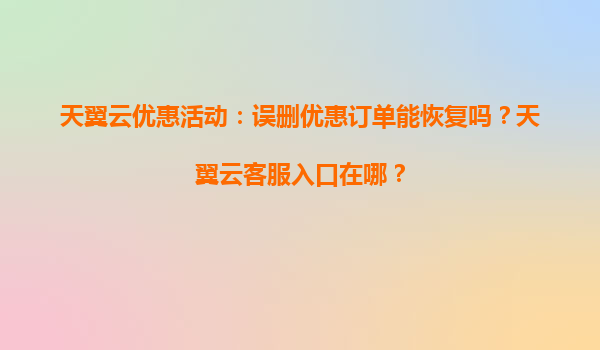 2025-04-04天翼云优惠活动:误删优惠订单能恢复吗?天翼云客服入口在哪? 一、天翼云优势解析:为何用户选择天翼云? 天翼云作为中国电信旗下的云计算服务品牌,凭借以下核心优势成为企业和个人用户的首选: ...