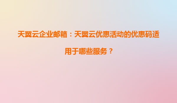 2025-04-01天翼云企业邮箱优惠活动:优惠码适用服务全解析 一、优惠码适用范围 天翼云企业邮箱推出的优惠码活动,主要覆盖以下核心服务场景: 新用户注册套餐:基础版...