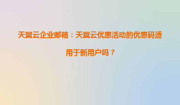 2025-04-01天翼云企业邮箱优惠活动:优惠码是否适用于新用户? 一、优惠码适用范围解析 天翼云企业邮箱近期推出的优惠活动备受关注,其中最核心的问题是:优惠码是否适用于新用户?根据官方政策,此次优惠活动主...