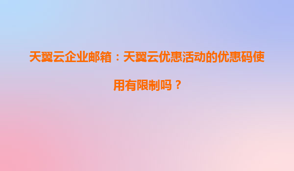 2025-04-01天翼云企业邮箱优惠活动适用范围解析 一、天翼云企业邮箱优惠活动适用范围 天翼云企业邮箱作为中国电信旗下的核心企业服务产品,其优惠活动覆盖了广泛的用户群体。以下是活动的主要适用范围:...