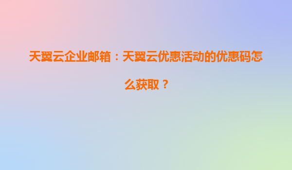 2025-04-01天翼云企业邮箱优惠活动详解:优惠码有效期及核心优势 一、天翼云企业邮箱优惠码有效期说明 当前天翼云推出的企业邮箱优惠活动备受关注,用户最关心的问题之一是优惠码的有效期。根据官方规则,优...