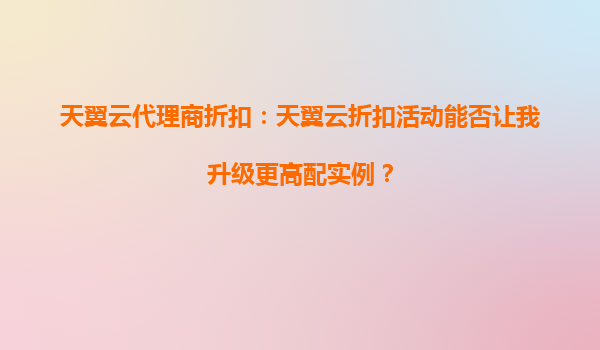2025-10-11天翼云代理商折扣:如何通过折扣活动升级更高配实例? 一、天翼云的核心优势 天翼云作为中国电信旗下的云计算品牌,凭借其强大的基础设施和丰富的行业经验,为...