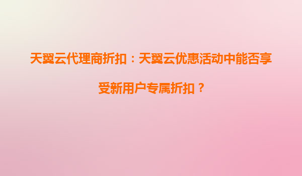 2025-10-12天翼云代理商折扣:新用户专属优惠解析与天翼云优势 一、天翼云代理商折扣与新用户专属优惠的关系 在天翼云的优惠活动中,代理商折扣与新用户专属折扣通常是两个独立的优惠体系。代理商折扣主要面向通过代...