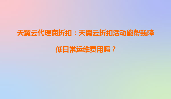 天翼云代理商折扣:如何通过折扣活动降低日常运维费用? 随着云计算技术的普及,越来越多的企业开始将业务迁移至云端,以降低IT基础设施的运维成本。然而,云服务的费用仍然是企业IT支出中的一大项。作为中国领...