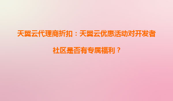 2025-10-11天翼云代理商折扣:开发者社区的专属福利解析 天翼云的技术优势与开发者友好生态 作为中国电信旗下的云计算品牌,天翼云凭借央企背景和自主研发能力,构建了覆盖IaaS、PaaS、SaaS的全栈云服务体系。其分布式云...