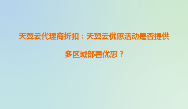 2025-10-12天翼云代理商折扣:多区域部署优惠详解 天翼云多区域部署的独特优势 作为中国电信旗下的云计算服务品牌,天翼云凭借其强大的基础设施布局,在全国范围内拥有多个核心数据中心节点。这种广泛分布的架构不仅...