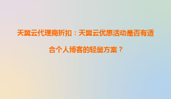 2025-10-11天翼云代理商折扣:天翼云优惠活动是否有适合个人博客的轻量方案? 一、个人博客的轻量需求分析 对于个人博客而言,轻量化的云服务方案是理想选择。这类场景通...
