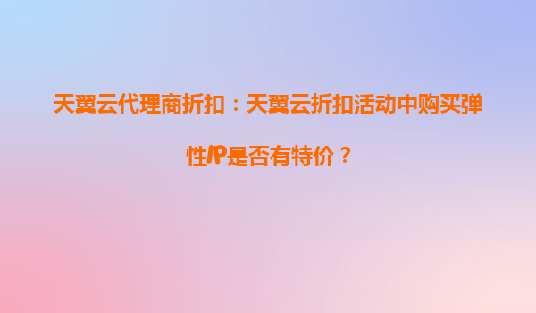 2025-10-10天翼云代理商折扣:弹性IP特价活动解析与天翼云核心优势 一、天翼云弹性IP代理商折扣活动详解 在天翼云近期的代理商折扣活动中,弹性IP资源确实推出了限时特价...