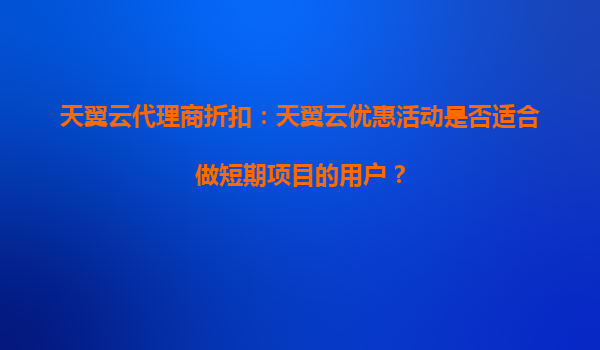 2025-10-10天翼云代理商折扣:短期项目用户的理想选择 在数字化转型的浪潮中,云计算已成为企业高效运营的核心工具。对于短期项目用户而言,如何快速部署、灵活扩展且控制成本是关键需求。天翼云凭借其代理商折扣政策和丰...