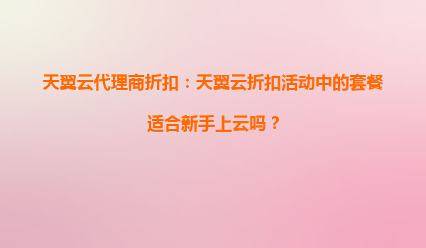 2025-10-10天翼云代理商折扣:天翼云折扣活动中的套餐适合新手上云吗? 一、天翼云的优势解析 随着云计算技术的普及,越来越多的企业和个人开始选择云服务来满足业务需求。天翼云作为中国电信旗下...