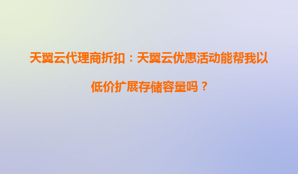 2025-10-10天翼云代理商折扣:天翼云优惠活动能帮我以低价扩展存储容量吗? 一、天翼云的核心优势 天翼云作为中国电信旗下的云计算品牌,凭借其强大的基础设施和丰富的行业经验,为用户提供稳定、安全、高效...