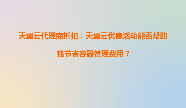 2025-10-07天翼云代理商折扣:天翼云优惠活动能否帮助我节省容器管理费用? 一、天翼云代理商折扣的优势 天翼云作为中国电信旗下的云计算服务品牌,凭借其强大的基础设施和稳定的网络服务,为企业提供了多样...
