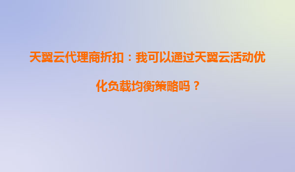 2025-10-07天翼云代理商折扣:如何通过天翼云活动优化负载均衡策略 引言 在当今数字化时代,云计算已成为企业IT基础设施的核心组成部分。负载均衡作为云计算中的关键技术...