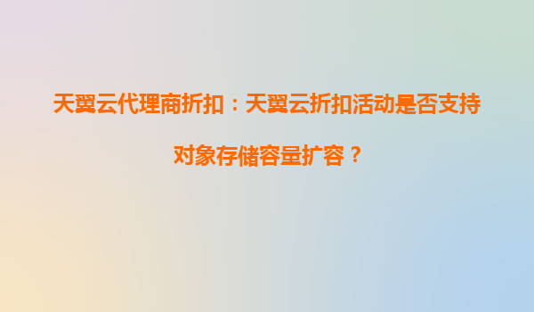 2025-10-05天翼云代理商折扣活动解析:对象存储扩容支持与核心优势 天翼云代理商折扣活动概览 天翼云作为中国电信旗下的云计算服务品牌,通过代理商体系为企业用户提供灵活的资源采购方案。近期推出的折扣活动中,用...