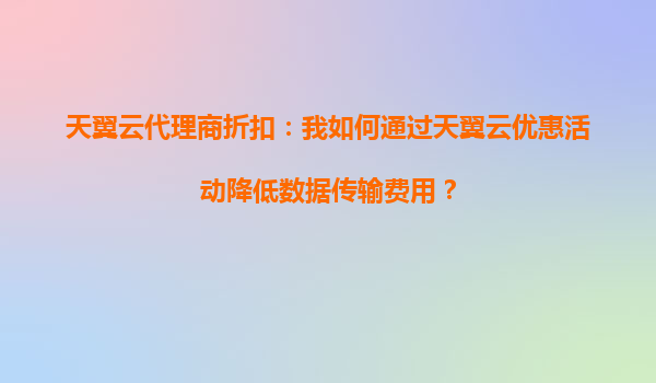 2025-10-05天翼云代理商折扣:如何通过天翼云优惠活动降低数据传输费用? 一、天翼云的核心优势 天翼云作为中国电信旗下的云计算服务品牌,凭借其强大的基础设施和资源优势,为企业用户提供了高性能、高可靠的云服务...
