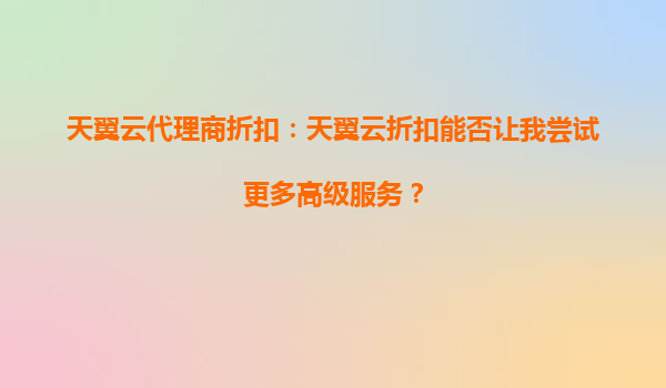 2025-10-05天翼云代理商折扣:天翼云折扣能否让我尝试更多高级服务? 引言 在数字化转型的浪潮中,云计算已成为企业提升效率、降低成本的核心工具。天翼云作为中国电信旗...