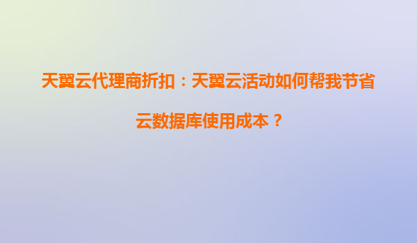 2025-10-03天翼云代理商折扣:如何通过天翼云活动节省云数据库成本 天翼云的核心优势 天翼云作为中国电信旗下的云计算服务品牌,凭借其强大的基础设施和本土化服务能力,为用户提供了高性价比的云数据库解决方案。其...