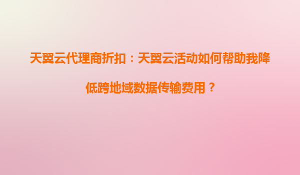 2025-10-01天翼云代理商折扣:天翼云活动如何帮助降低跨地域数据传输费用 一、跨地域数据传输的挑战与成本问题 在数字化转型的浪潮中,企业业务往往需要跨地域部署,随之而来的数据传输需求也日益增长。然而,跨地域...