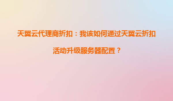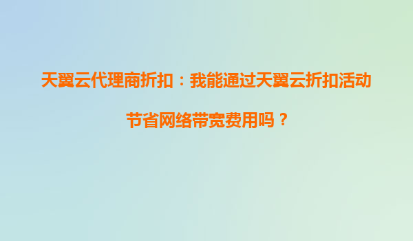 2025-10-02天翼云代理商折扣:如何通过活动节省网络带宽费用 天翼云代理商折扣活动的核心优势 天翼云作为中国电信旗下云计算品牌,通过代理商体系为用户提供弹性折扣政策。新老用户均可通过官方授权代理商参与限时促...