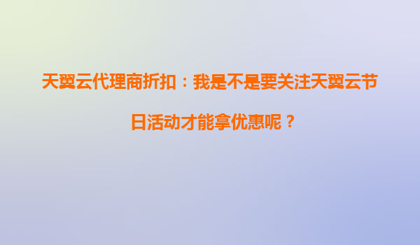 2025-09-29天翼云代理商折扣:我是不是要关注天翼云节日活动才能拿优惠呢? 一、天翼云的优势与代理商的价值 天翼云作为中国电信旗下的云计算品牌,凭借央企背景和全国覆盖的网络基础设施,为用户提供...