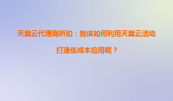 2025-09-29天翼云代理商折扣:我该如何利用天翼云活动打造低成本应用? 在云计算快速发展的今天,企业纷纷寻求通过云服务来降低运营成本并提高效率。天翼云作为国内领先的云服务提供商之一,凭借其稳定的性能和丰富的...