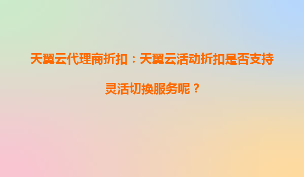 天翼云代理商折扣:天翼云活动折扣是否支持灵活切换服务? 一、天翼云代理商折扣概述 天翼云作为中国电信旗下的云计算服务品牌,凭借其强大的基础设施和稳定的网络服务,已成为国内云计算市场的重要参与者...