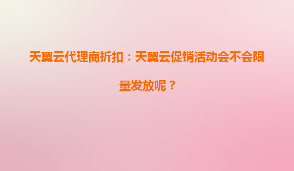 2025-09-29天翼云代理商折扣解析:促销活动是否限量?如何把握最佳合作机会 一、天翼云促销活动的限量策略分析 许多用户在关注天翼云促销活动时,最关心的问题之一就是折...