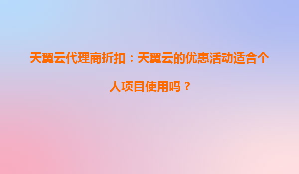 2025-09-28天翼云代理商折扣:天翼云的优惠活动适合个人项目使用吗? 一、天翼云的核心优势 天翼云作为中国电信旗下的云计算品牌,凭借其央企背景和强大的基础设施能力,在安全性、...