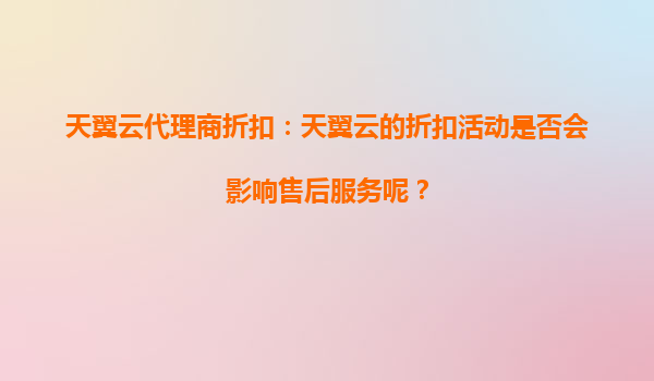 2025-09-27天翼云代理商折扣:天翼云的折扣活动是否会影响售后服务? 随着云计算技术的快速发展,越来越多的企业选择将业务迁移到云端。作为国内领先的云计算服务提供商,天翼云凭借强大的技术实力、完善的产品体系以及优...