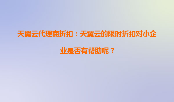2025-09-24天翼云代理商折扣:天翼云的限时折扣对小企业是否有帮助? 在当今数字化转型的浪潮中,云计算已成为企业提升效率、降低成本的重要工具。对于中小企业而言,资源的有限性使得选择合适的云服务提供商至...