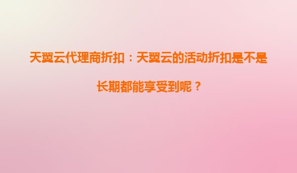 天翼云代理商折扣政策解析:优惠是否覆盖全产品线? 一、天翼云代理商折扣活动的产品覆盖范围 天翼云作为中国电信旗下云计算品牌,其代理商折扣活动通常采取"重点产品优先+阶段性全品类覆盖"的策...