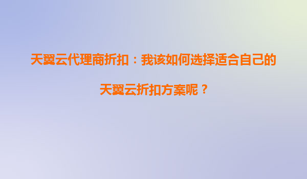 2025-09-24天翼云代理商折扣:如何选择适合自己的天翼云折扣方案 在当今数字化时代,云计算已成为企业信息化建设的核心基础设施之一。天翼云作为中国电信旗下的云计算品牌,凭借其强大的资源优势和稳定的服务能力,为...