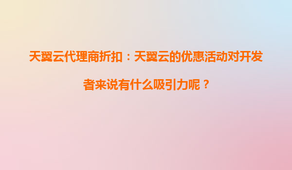 2025-09-24天翼云代理商折扣:天翼云的优惠活动对开发者来说有什么吸引力呢? 一、天翼云的核心优势 天翼云作为中国电信旗下的云计算品牌,凭借强大的基础设施资源、稳定的网络覆盖以及本土化...