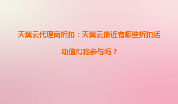 2025-09-23天翼云代理商折扣:天翼云折扣是否适合多业务组合部署? 引言 随着云计算技术的快速发展和广泛应用,越来越多的企业开始将业务迁移到云端。天翼云作为中国电信旗下的云计算服务品牌,凭借其强大的资源...