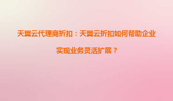 2025-09-22天翼云代理商折扣:天翼云折扣如何帮助企业实现业务灵活扩展? 一、引言:数字化时代的企业扩展需求 在数字化转型的浪潮中,企业对IT资源的灵活性和可扩展性需求日益增强。无论是初创企业还是大型...