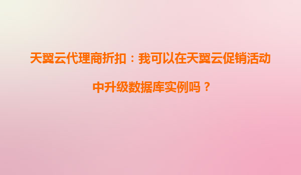 2025-09-20天翼云代理商折扣:天翼云促销活动中升级数据库实例的可行性分析 一、天翼云代理商折扣与促销活动概述 天翼云作为中国电信旗下的云计算服务品牌,近年来通过代理商体系为...